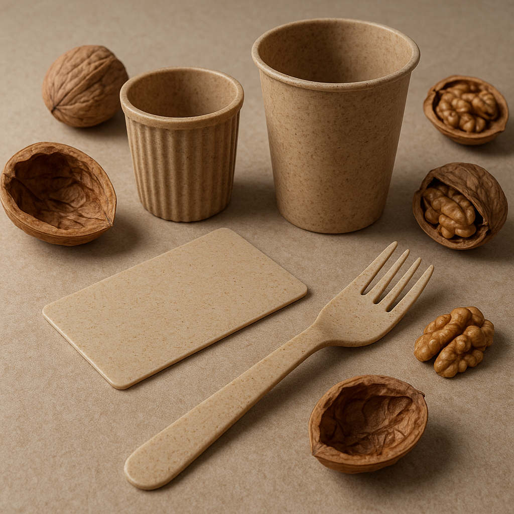 - Opakowania jednorazowe (folie, torby, kubki), które ulegają biodegradacja w kontrolowanych warunkach;